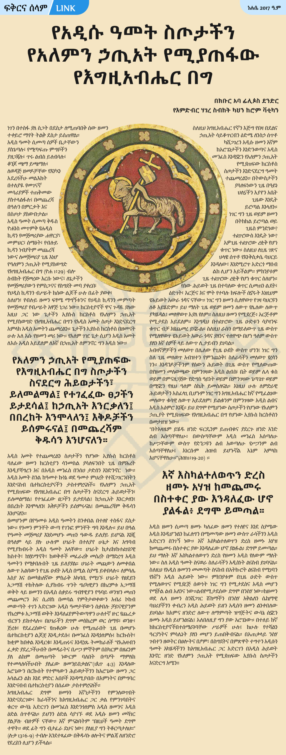 የአዲሱ ዓመት ስጦታችን የአለምን ኃጢአት የሚያጠፋው የእግዚአብሔር በግ በክቡር አባ ፊሊጶስ ደንድር